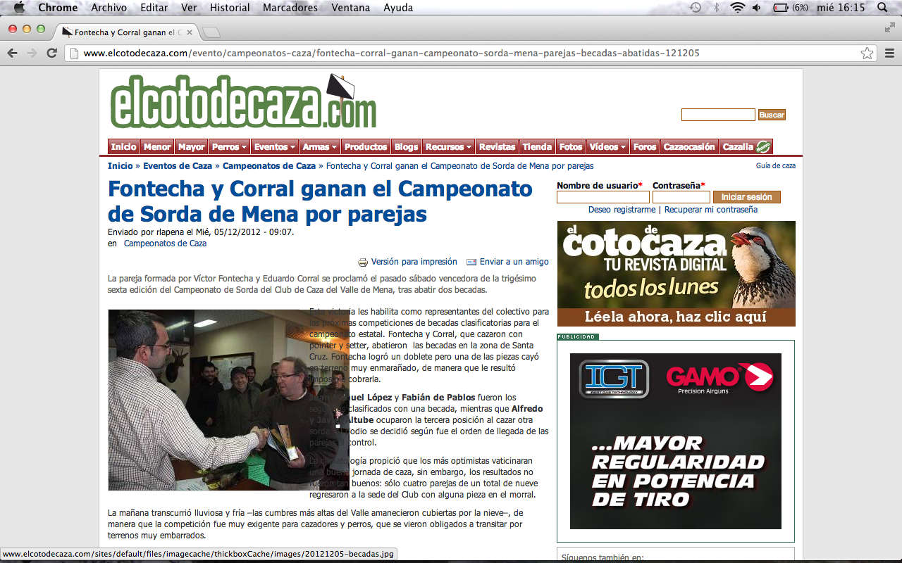 http://www.elcotodecaza.com informa sobre el XXXVI Campeonato de Sorda del Club de Caza del Valle de Mena
