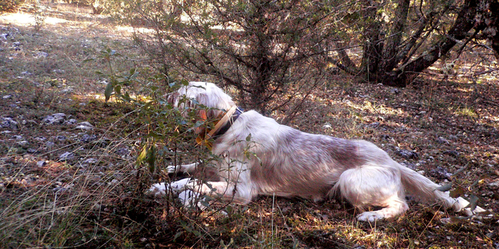 Rex, un setter  de diez años con mucha pasión e iniciativa, mostró la becada para que los cazadores la pudieran abatir. A los ganadores de la prueba también les acompañó Lay, una setter de tres años. “Ha sido suerte, y sobre todo mérito del perro”, señaló un más que satisfecho Javi Vicente.