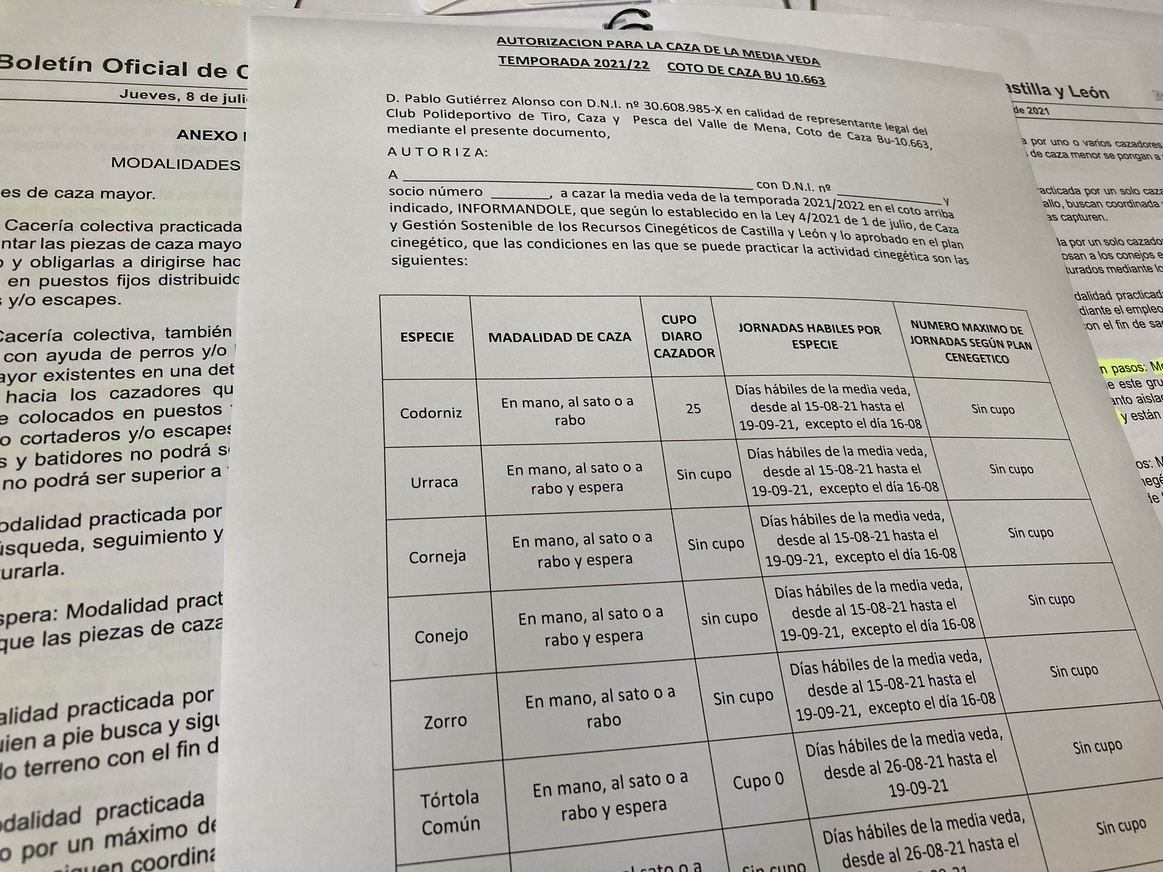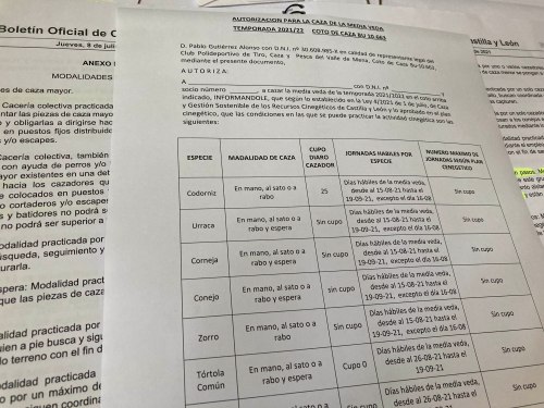 La ley de caza de Castilla y León, desde que entró en vigor, obliga a que el cazador lleve consigo una autorización para que pueda practicar la actividad cinegética. El documento debe ir firmado por el propio cazador, además de por el titular del coto y recoger qué días son hábiles, cupos y qué especies es legal capturar.