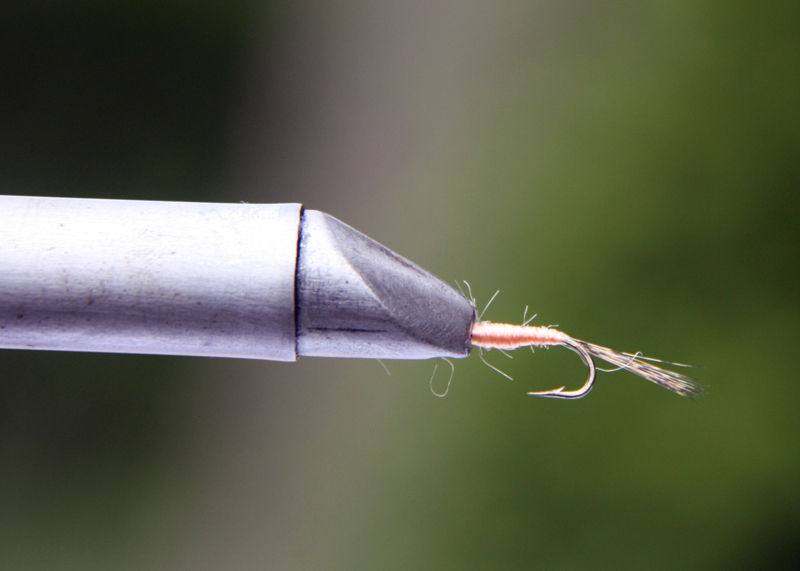 También es conveniente comenzar por anzuelos de cierto tamaño; como mínimo en el 16. Y que los patrones no tengan demasiados elementos que compliquen la construcción de la artificial. El montaje de algunos modelos de ninfas y de secas con CDC puede ser una buena opción para dar los primeros pasos en esta actividad.