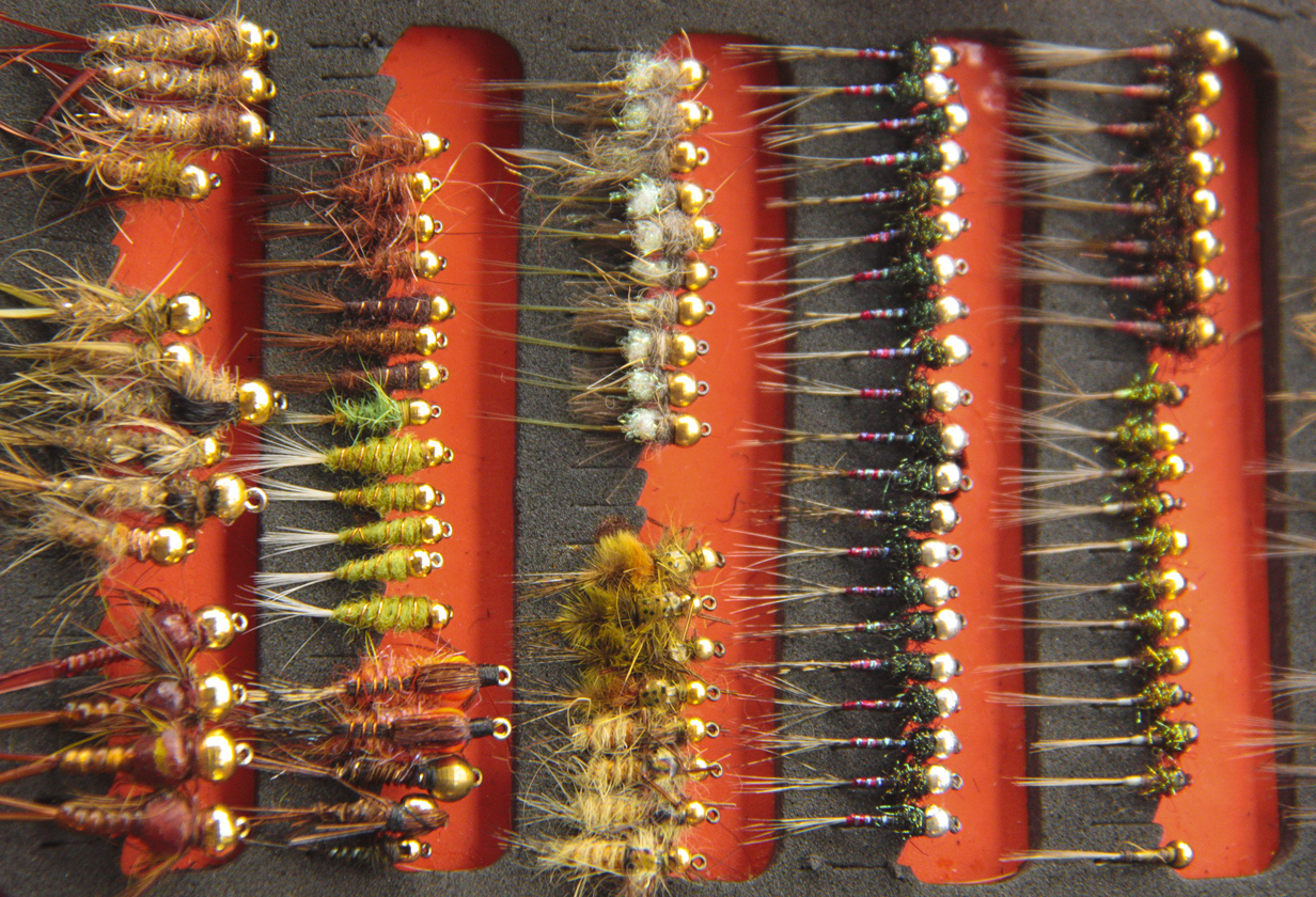 Por lo que se refiere a las moscas, en la pesca con ninfa cabe un amplio abanico de posibilidades. La mayor virtud que puede tener una artificial es que transmita sensación de vida; que incite a las truchas a comer o atacar. Así, hay materiales clásicos como el pelo de liebre y el faisán que siempre funcionan. Sin embargo, en el extremo opuesto están los conocidos como perdigones -ninfas barnizadas- que profundizan muy rápido- que responden a otra concepción pero que, diseñados para las competiciones, se han demostrado muy efectivos.